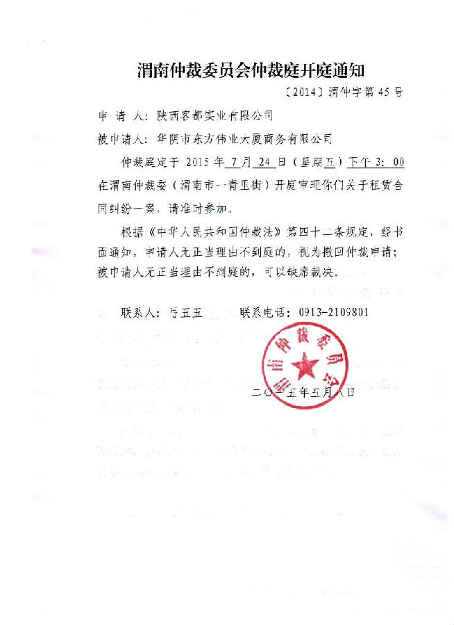 [2014]渭仲字第45號案件組、開庭通知及公告