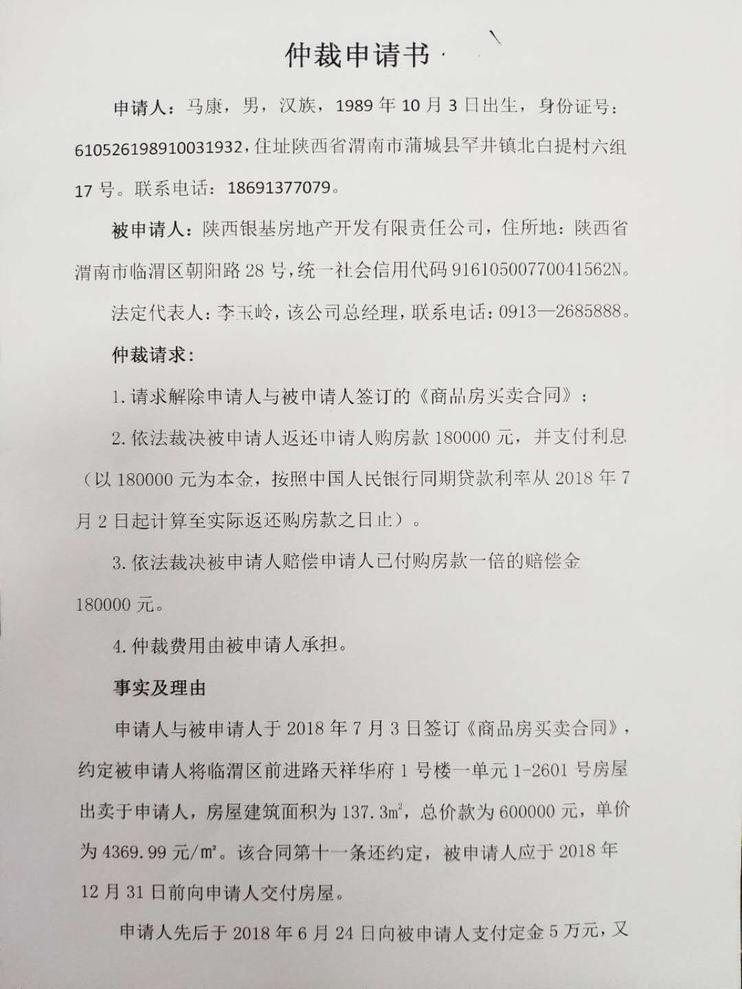 馬康與陜西銀基房地產開發(fā)有限責任公司一案公告