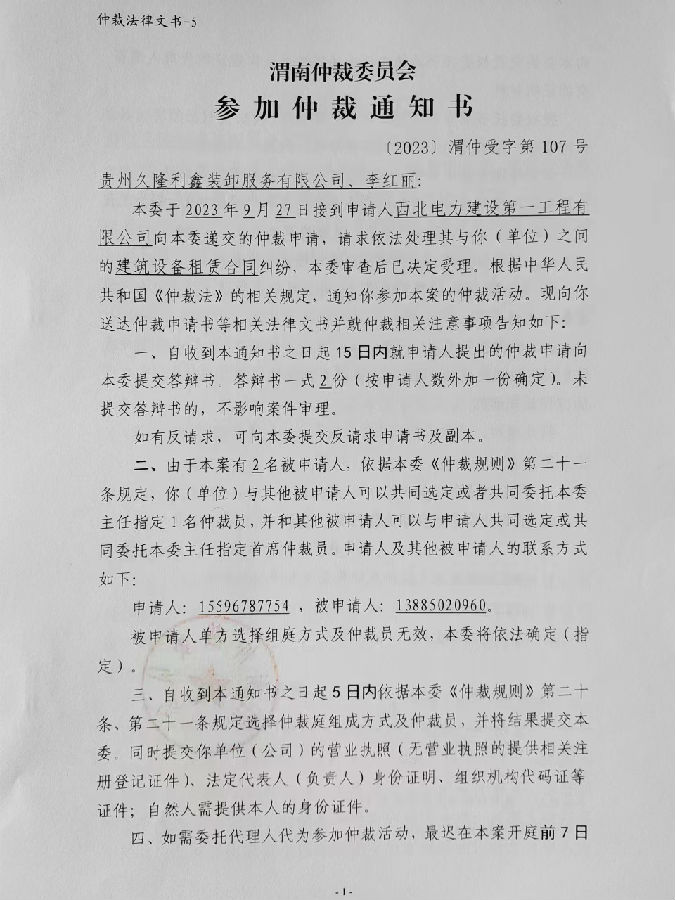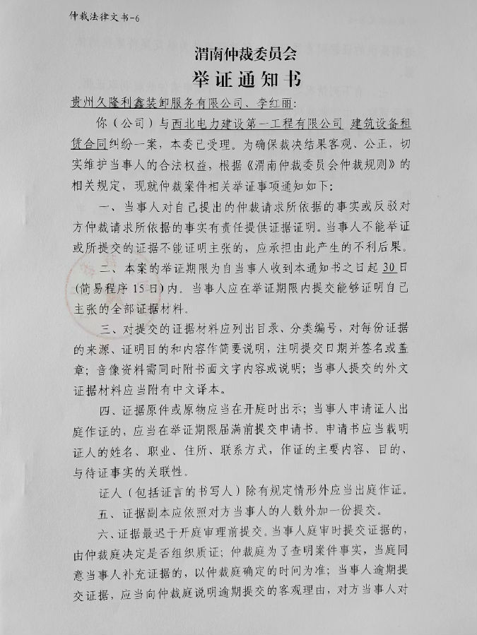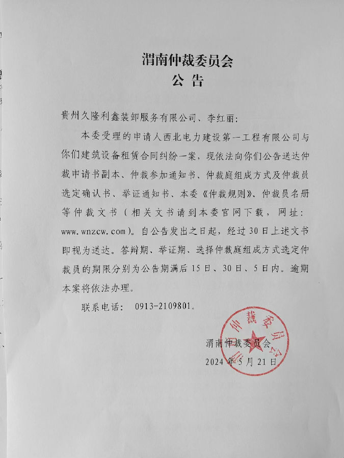 西北電力建設第一工程有限公司與貴州久隆利鑫裝卸服務有限公司、李紅麗建筑設備租賃合同糾紛案公告